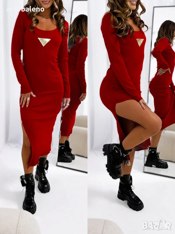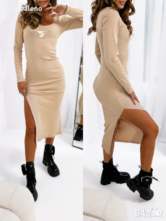 Открийте тази оребрена миди рокля, която перфектно приляга на вашата фигура. Дългите ръкави и кръглото деколте създават елегантен вид, идеален за по-хладните дни. Тази уникална оребрена рокля ще подчертае перфектно фигурата ви!