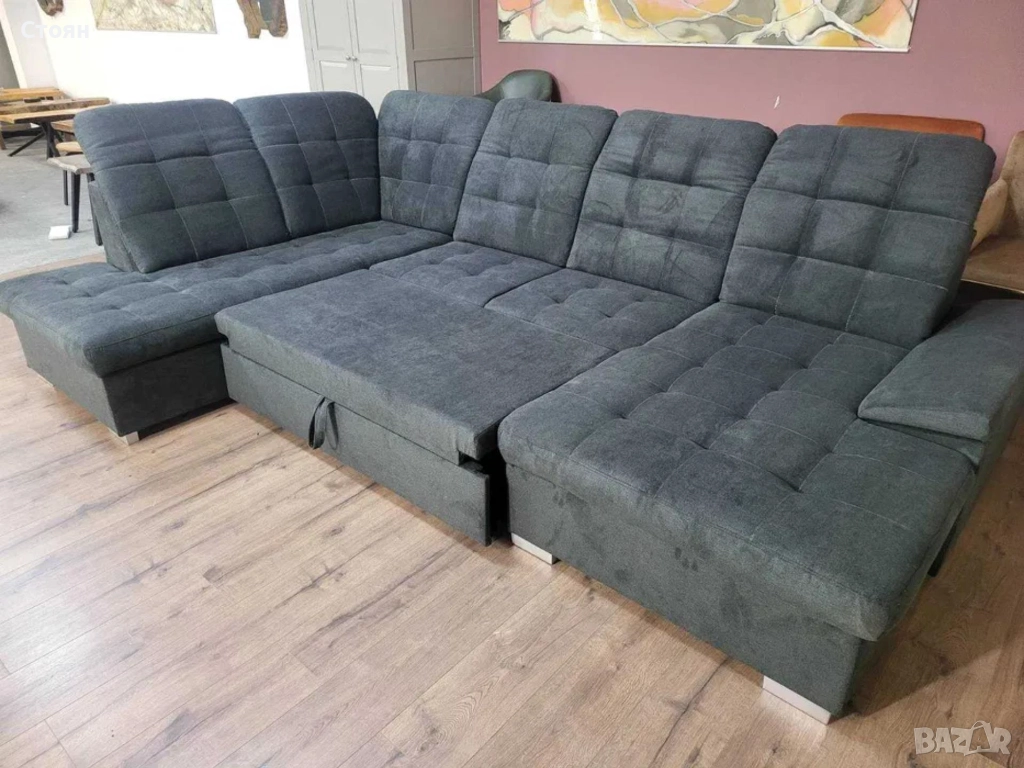 ПРОМОЦИЯ!!!Тъмно сив П - образен ъглов диван Nixon с функция сън → Обява 52829930