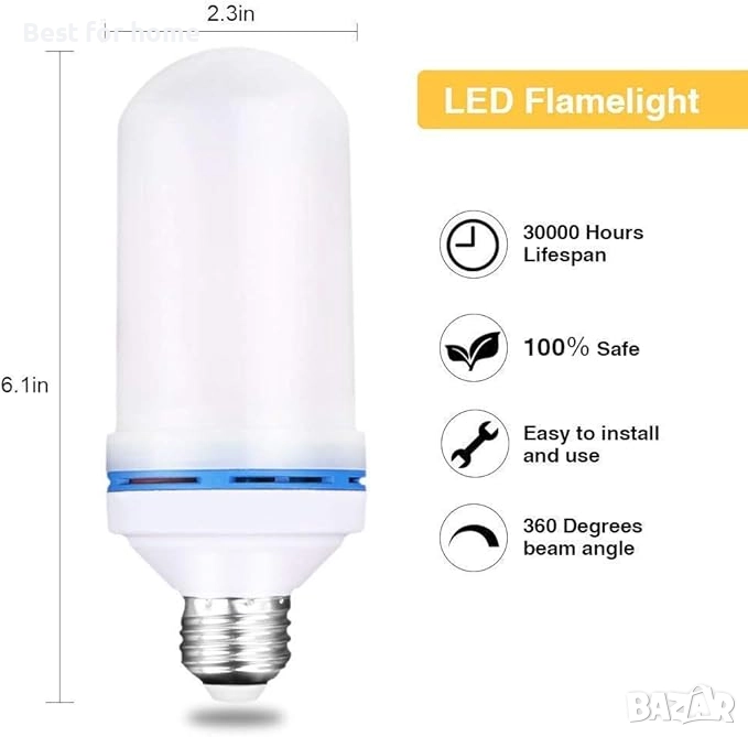 Лесна за употреба и добра гъвкавост: LED крушката с ефект на пламък е съвместима с цокъл E27 за лесен монтаж и подмяна на LED крушки. Тя е идеална за дома, бара, хотела, ресторанта, кафенето, сватбените декорации, църквата, замъка и др.