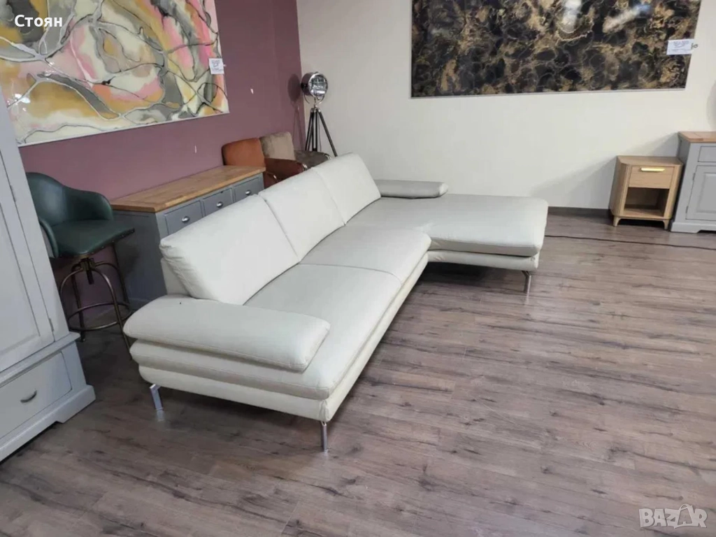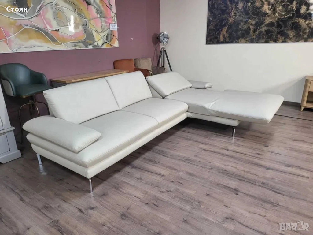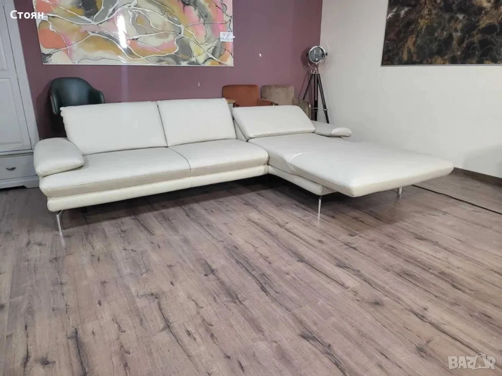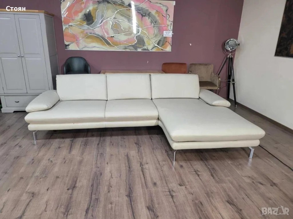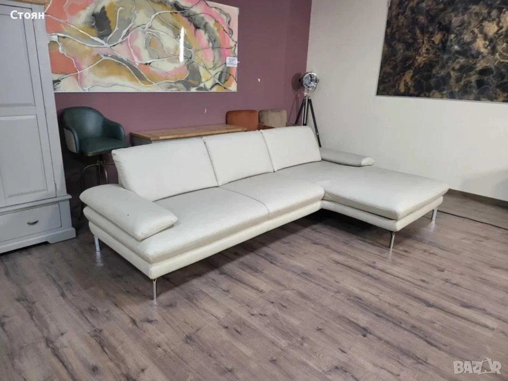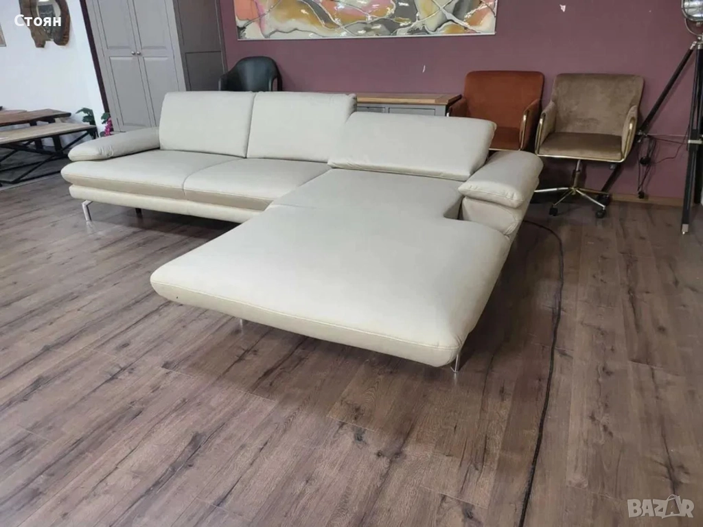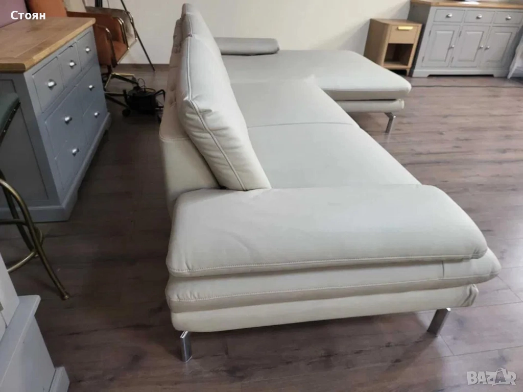 ПРОМОЦИЯ!!!Кремав кожен ъглов диван с ел. лежанка Dieter Knoll Arzona