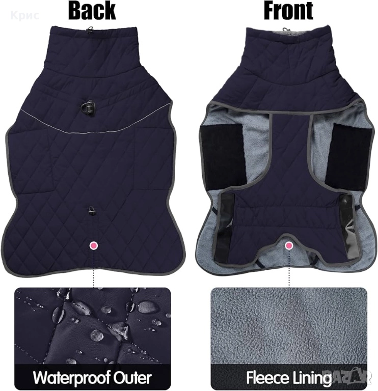 Кучешка Термо дреха, зимно яке. От вътрешната страна е топъл полар, а от външната водоустойчива материя.