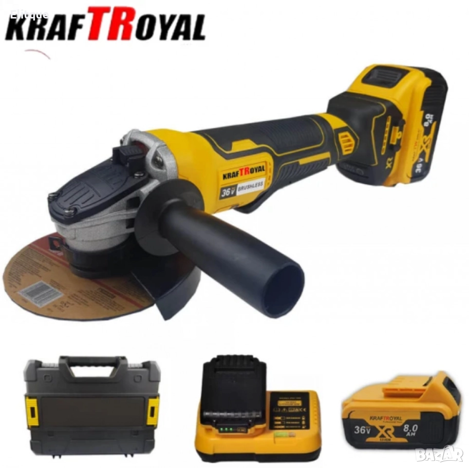 Комплект акумулаторен ъглошлайф 36V 8,0 Ah + 2 батерии и зарядно в куфар