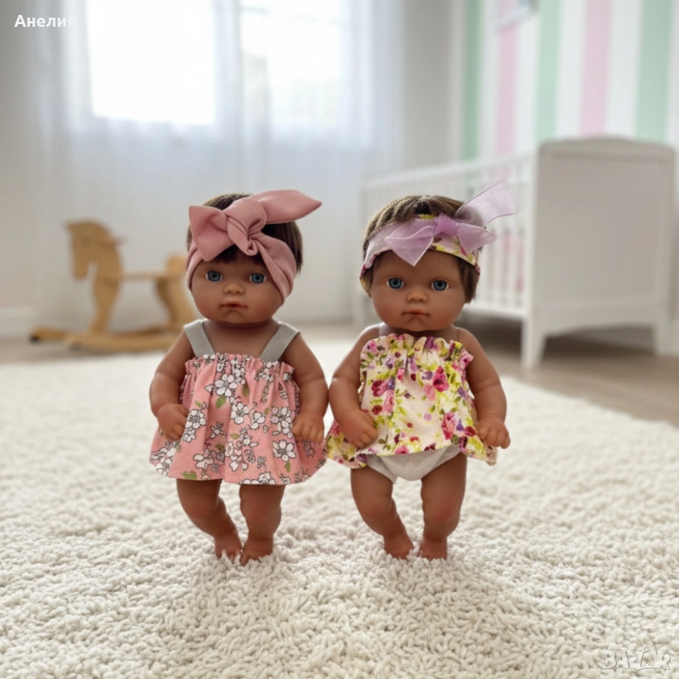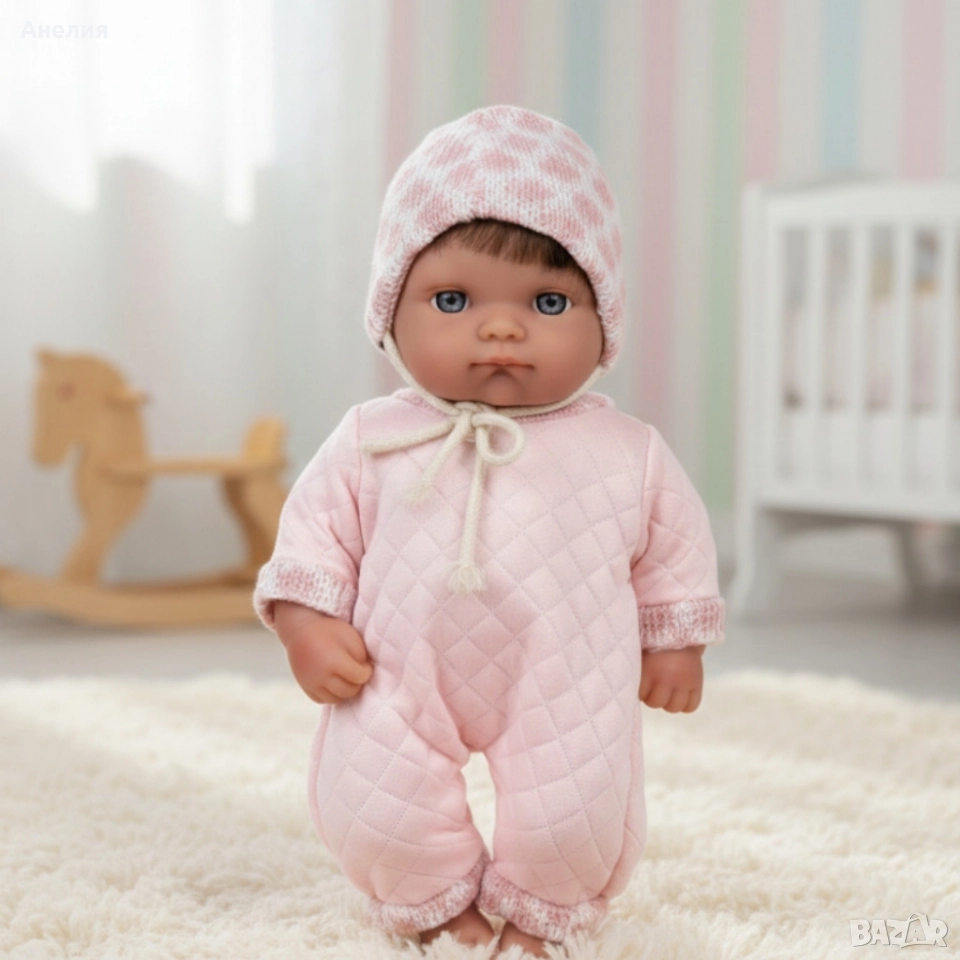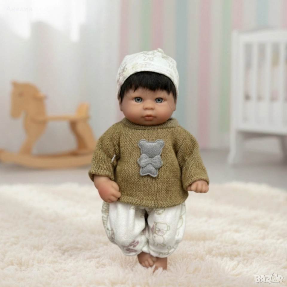 Варианти: розов гащеризон с розова шапка, бял гащеризон с жълта шапка и шал, кафява блуза с мече, син гащеризон със синя шапка, розова рокля на цветя с лента за коса, жълта рокля на цветя с лента за коса;