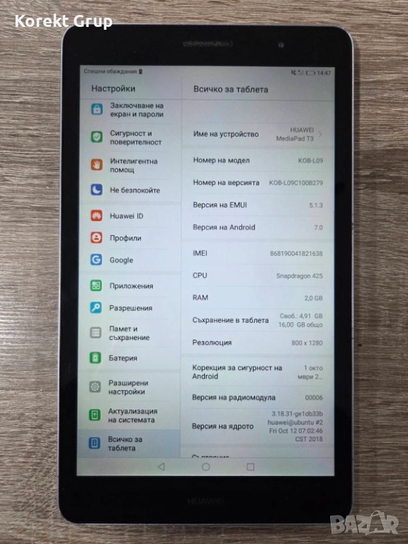 Таблета е запазен подържа СИМ карта в добро състояние е няма драскотини по дисплея или по задната част на таблета версия на Адройда 7.0.Изпащаме с Еконт с опция преглед и тест преди плащане.