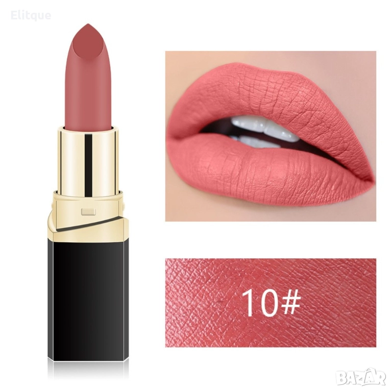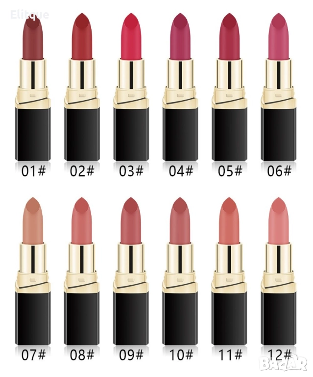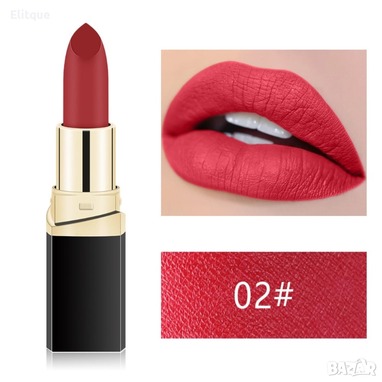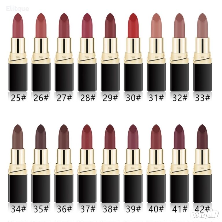 Представяме Ви невероятната колекция от матови водоустойчиви червила! Специална колекция от матови червила! Изберете Вашият любим цвят от любимата си колекция червила. Дълготраен и естествен цвят за 24 часа, само с едно нанасяне! Забравете за размазаното червило по дрехите благодарение на матиращият ефект.