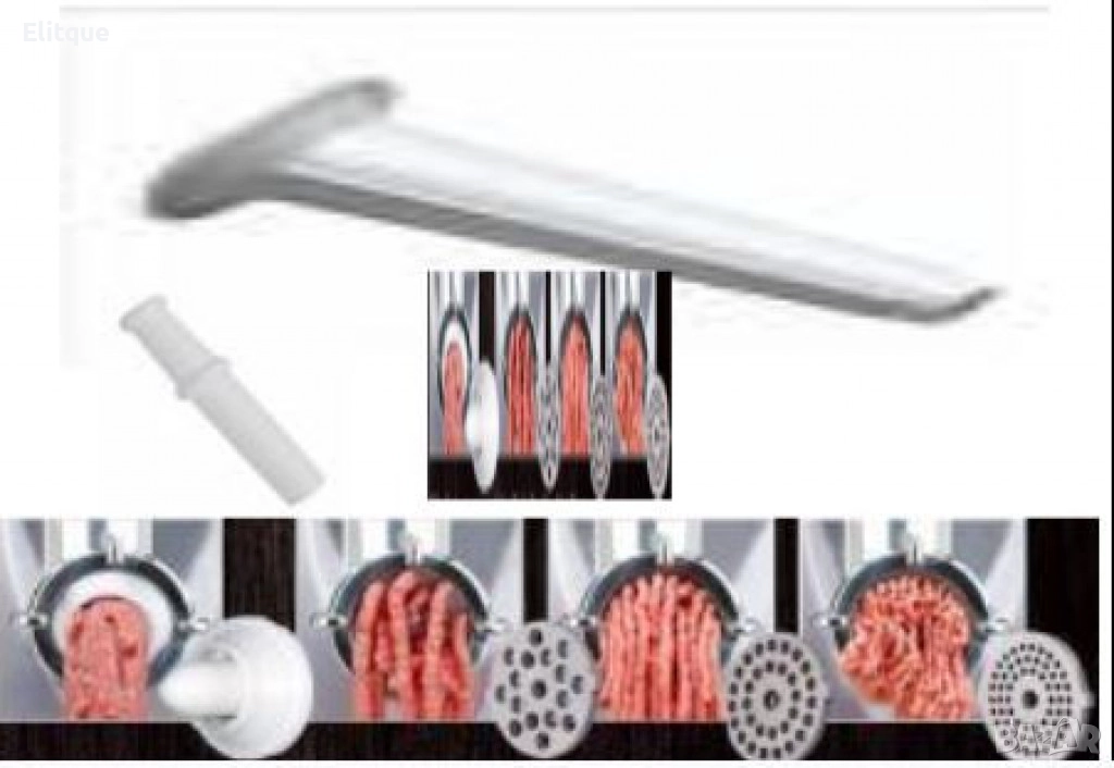 МЕСОМЕЛАЧКА С ПРИСТАВКА ЗА ДОМАТИ Електрическа месомелачка с функция реверс – смяна на посоката. Мощен меден мотор. Пластмасов корпус с отделение за съхранение на аксесоари. Разглобяеми здрави части от лят алуминий. Подвижен електрически кабел. Противоплъзгащи се гумени крачета за допълнителна стабилност.