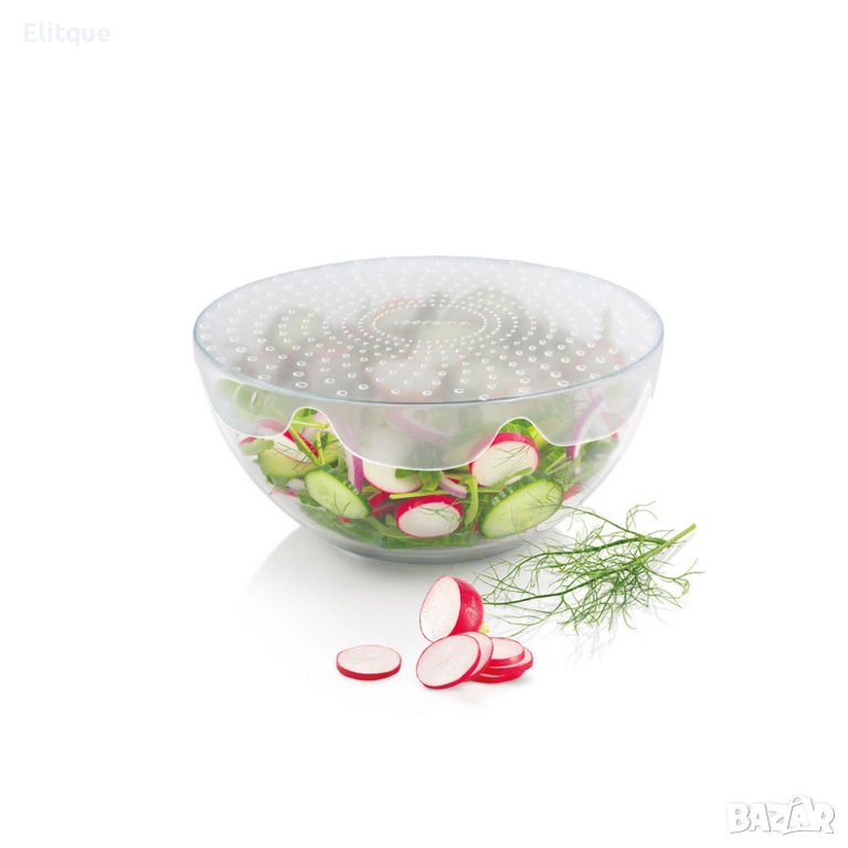 Предназначени за плътно затваряне на малки и по-големи кръгли съдове за съхранение на храна/купи. Залепва здраво за стените на съда, не докосва храната в него, като помага съдържанието да се запази по-дълго свежо.