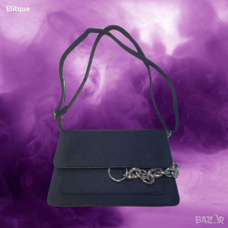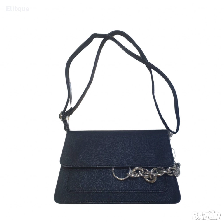 Малка дамска чанта тип портмоне, изработена в стилен и елегантен дизайн. Изработена е от висококачествени материали и е подходяща както за ежедневието, така и за специални поводи. Чантата разполага с регулируема дръжка за удобно носене през рамо или в ръка. Отличава се с изискан метален елемент отпред, който добавя нотка на лукс и изтънченост. Идеална е за носене на най-необходимите вещи като телефон, ключове и лични документи.