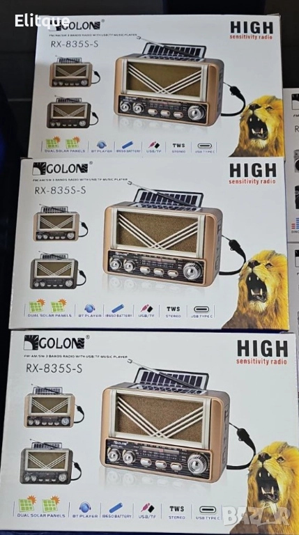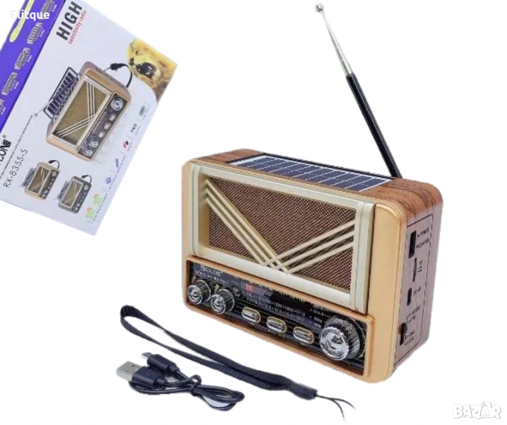 Това описание би подчертавало както класическите елементи, така и модерните функции на радиото, привличайки широк кръг потребители. Модел: RX-8355S-S; Честоти: FM, AM, SW; Соларни панели: Двойни, за по-бързо зареждане на батерията; Свързаност: Bluetooth, USB, TF карта; Батерия: 18650 акумулаторна батерия; Зареждане: USB Type-C и соларно; Размери: Компактни, подходящи за лесно пренасяне; Звук: TWS стерео система за високо качество на звука.