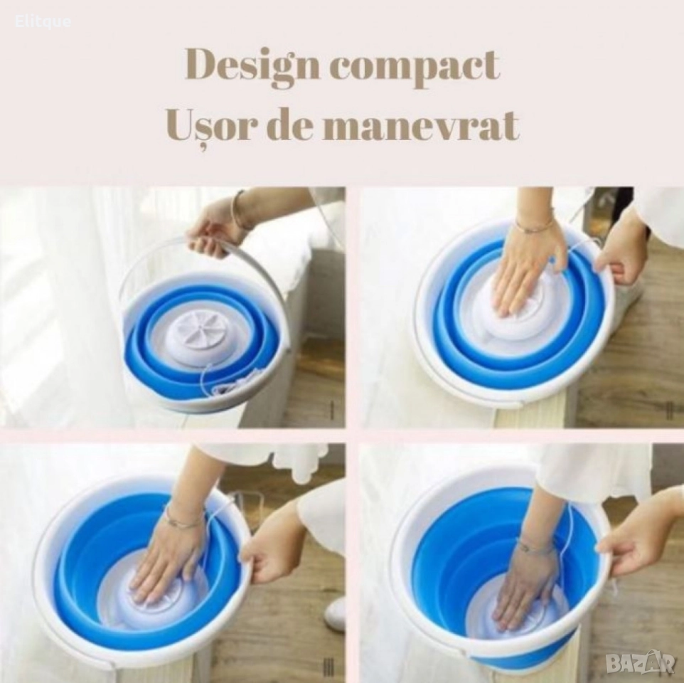 Мини преносима пералня, за пътуване, туризъм и почивка, ултразвукова турбина 24W