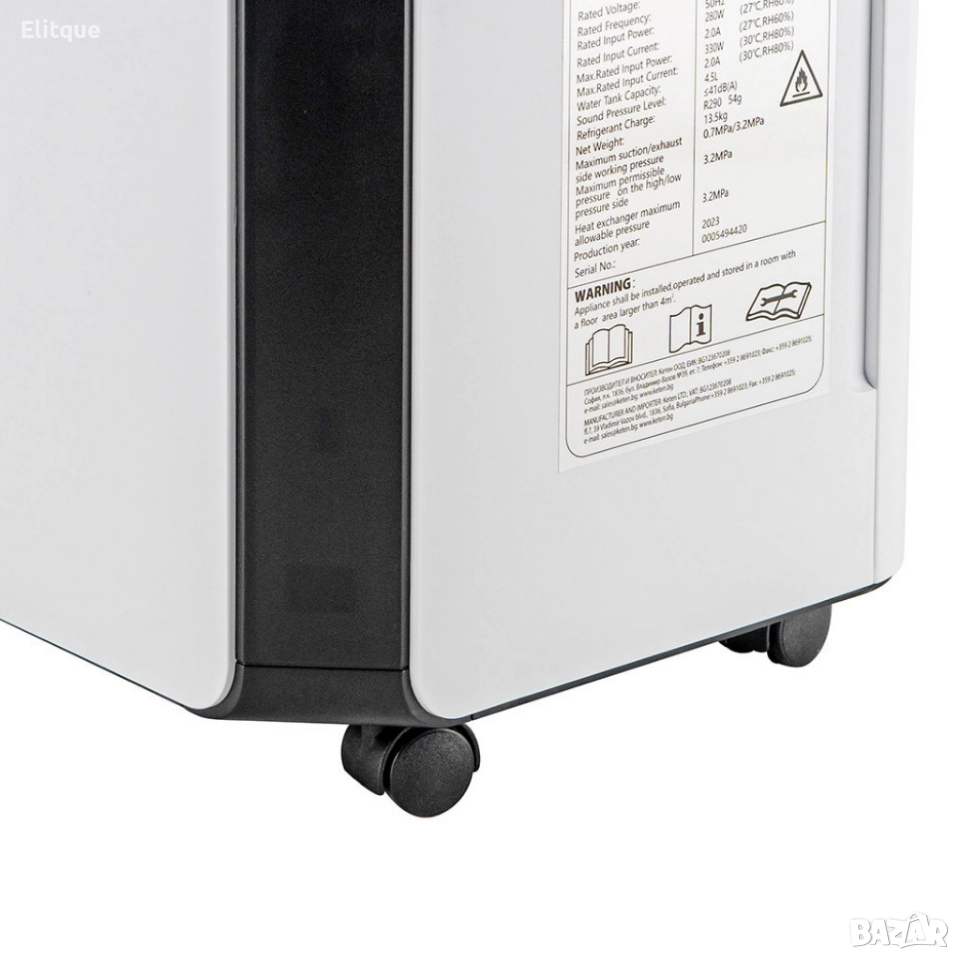 Висок капацитет на влагоабсорбиране до 20 л. / 24 часа; Обем на резервоара 4,5 l; Индикатор за пълен резервоар; Настройка на влажността 30-80%; Електронно управление „Child lock”функция; 24 часов таймер за настройка на времето за работа; 2 степени на вентилатора; Ниско ниво на шум - ≤45dB(A); Филтър за едри прахови частици; Ефективно премахване на влага и прах от въздуха; Висока енергийна ефективност; Постоянно дрениране; Компресор работещ с охлаждащ агент щадящ атмосферата R290/54g; Автоматично размразяване при ниски температури; Автоматично изключване и рестартиране; Функция за сушене на пране; Подходящ за помещения до 20-30 m²; Мощност: 330W, 2.0A,; Напрежение: AC 220-240V/50Hz. Гаранция: 24 месеца.