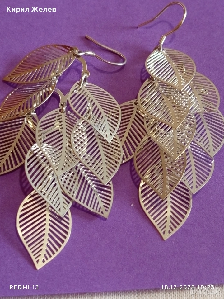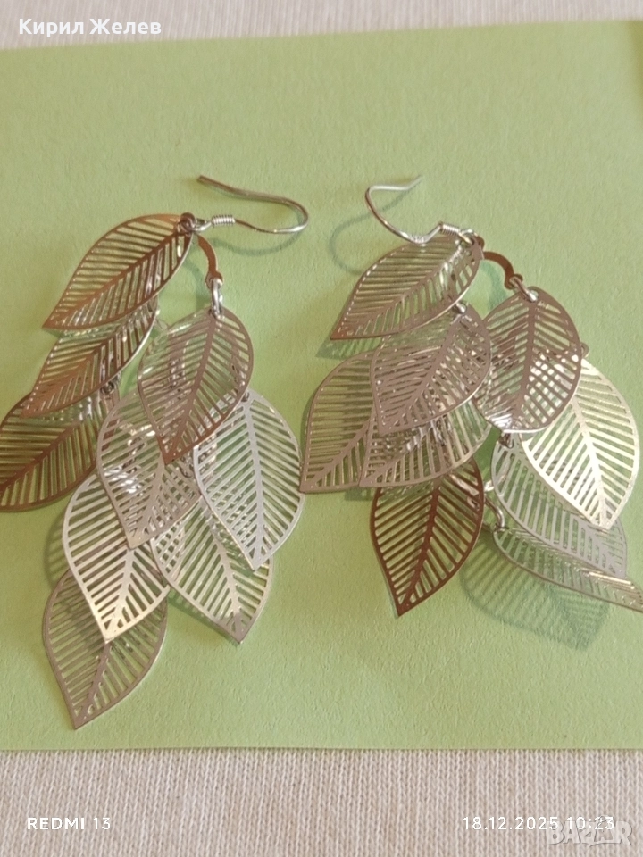 Модерни сребърни обеци във формата на листо нежни елегантен дизайн 52381