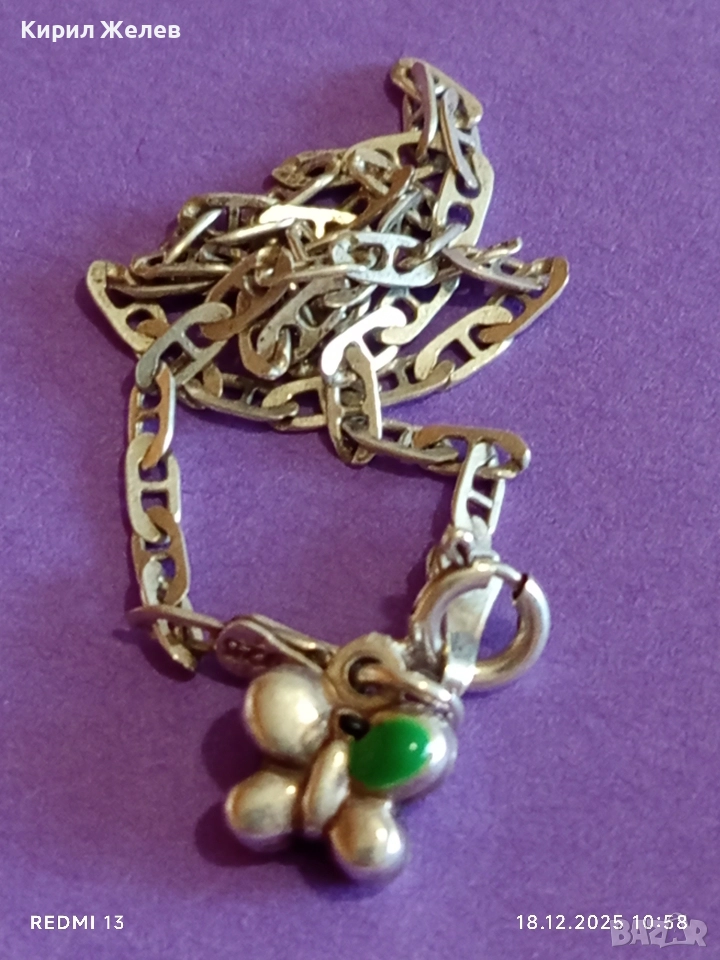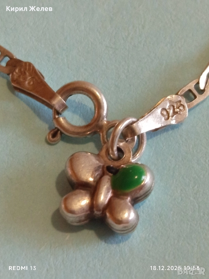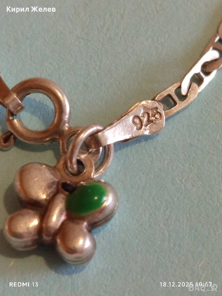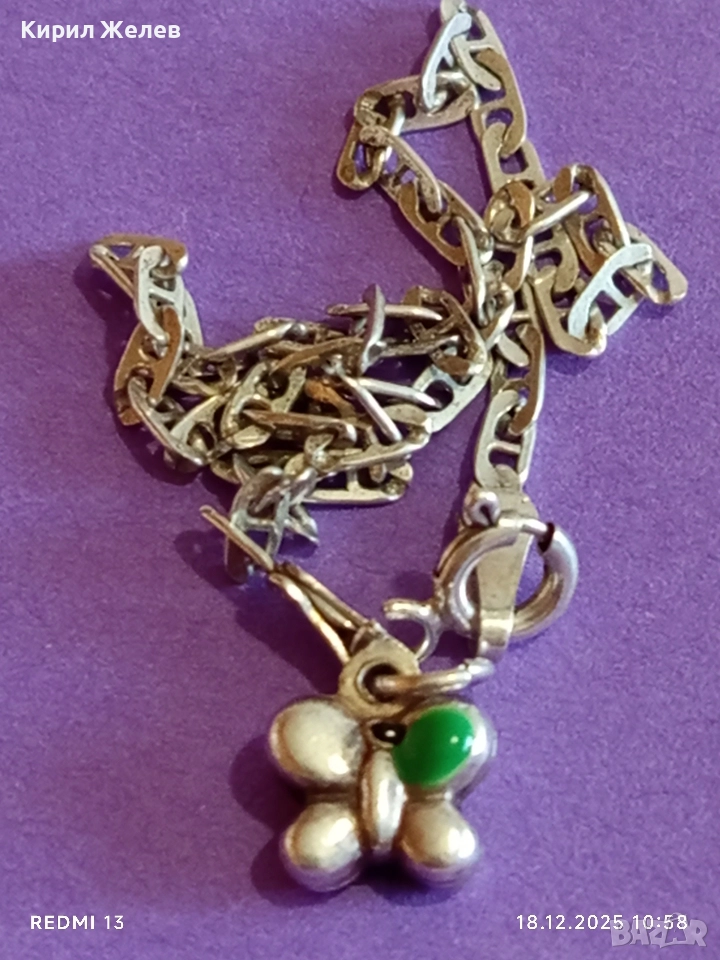 Сребърна гривна с талисман пеперуда 🦋 висока проба сребро майсторска изработка 47159