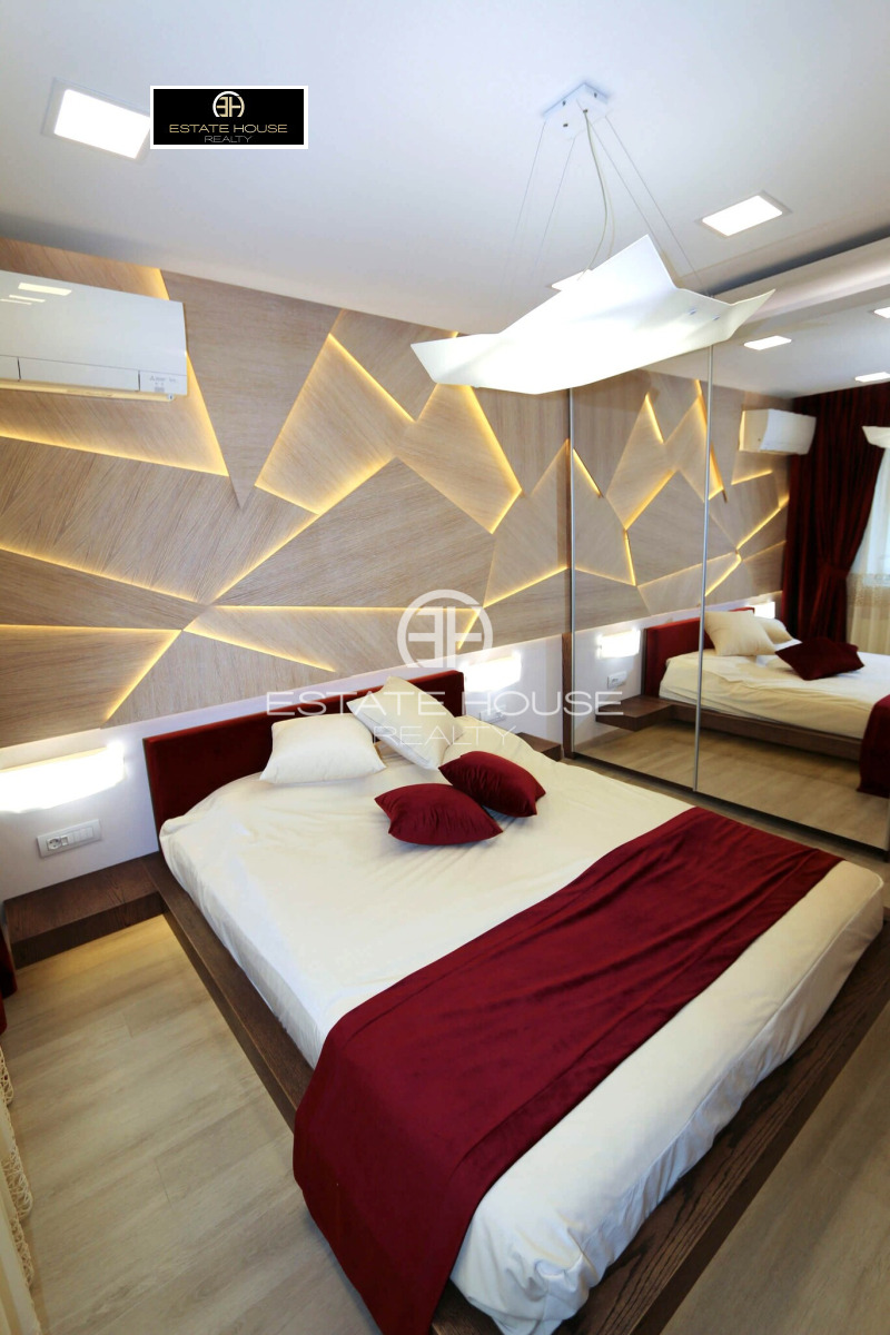 Апартаментът е напълно обзаведен с дизайнерски мебели, оборудван с климатици с WiFi управление, конвектори Adax за резервно отопление, три LCD телевизора, високоскоростен интернет и кабелна телевизия. Кухнята разполага с модерна техника съдомиялна, пералня със сушилня, керамични котлони, вградена фурна, микровълнова, кафеварка и двукрилен хладилник. Банята е с вградена тоалетна и душ кабина. В имота са предвидени разнообразни LED осветления и всички необходими аксесоари за удобно ежедневие.