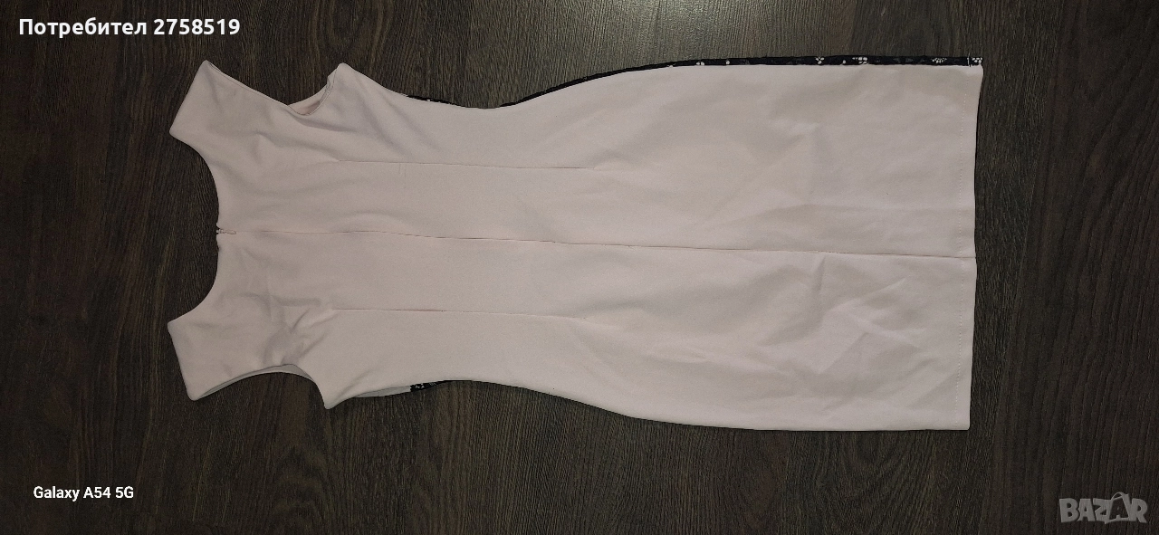 розова еластична рокля с черна дантела носена веднъж за повод.