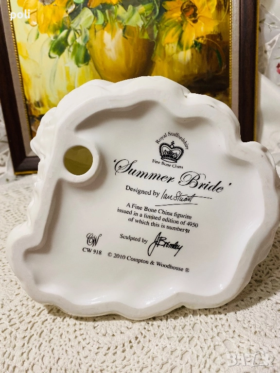 Невероятна, рядка , ръчно изработена и декорирана статуетка от костен порцелан Royal Staffordshire for Compton & Woodhouse “Summer Bride"