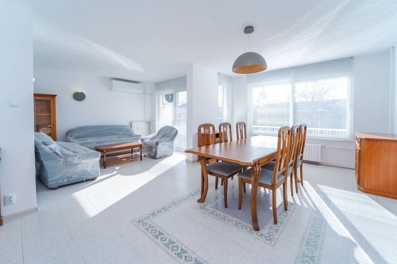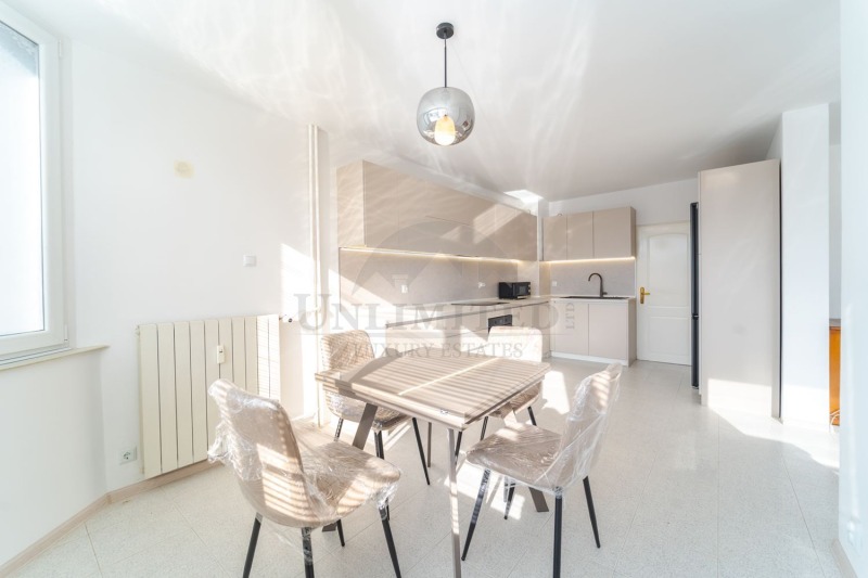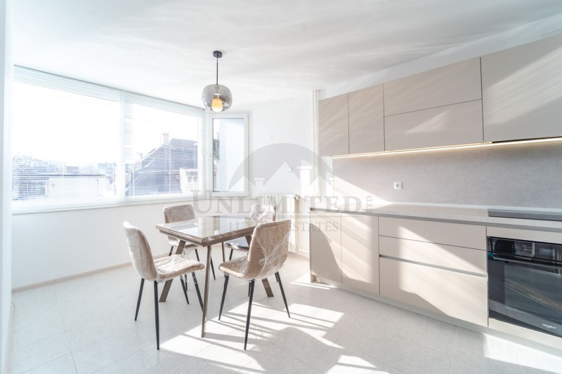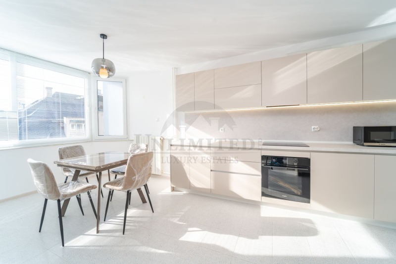 We are pleased to present a spacious and fully renovated four-bedroom apartment for rent, located in the highly desirable Geo Milev district of Sofia. The property features a brand-new modern kitchen, finished in elegant light tones and fully equipped with built-in appliances.