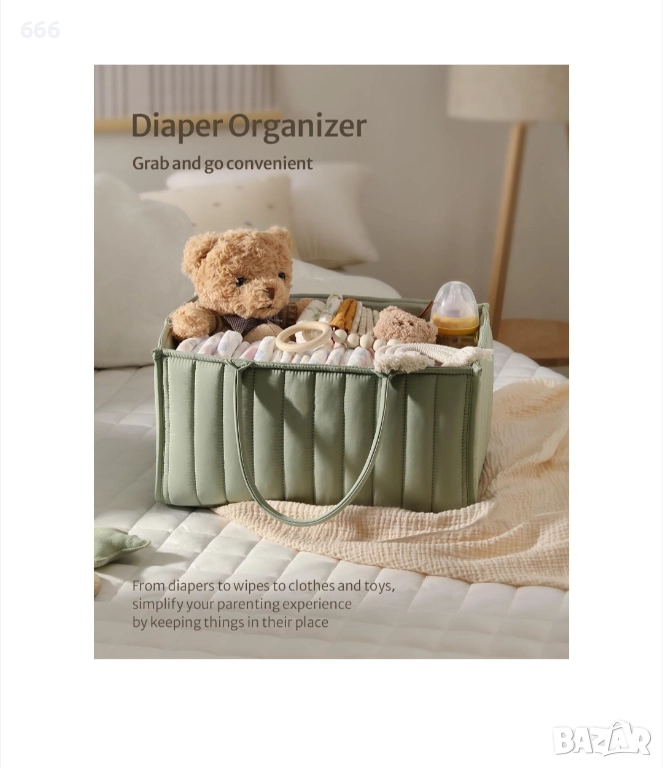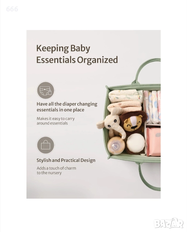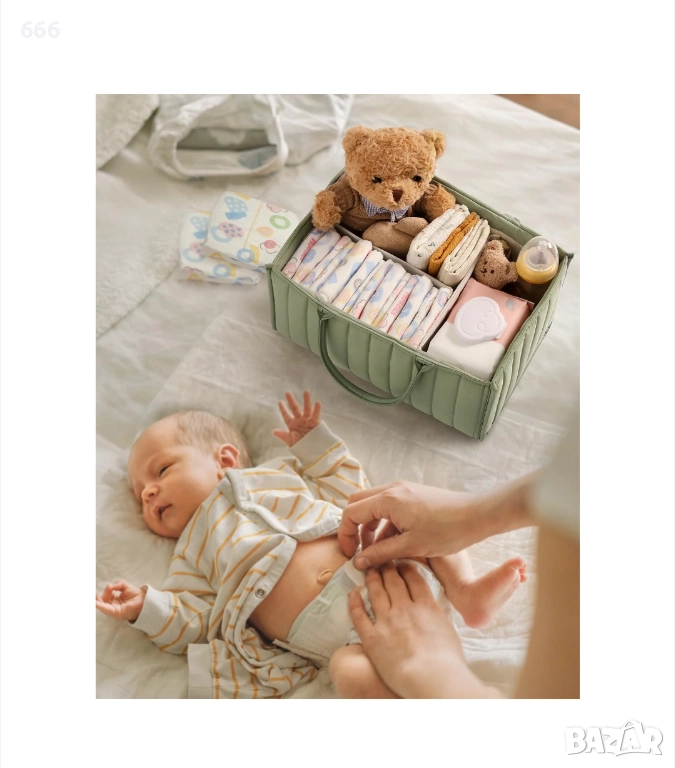 органайзер за пелени е изключително универсален, с място за всички основни неща за вашето бебе на едно място. Съхранявайте пелени, салфетки, лигавници, кремове, играчки, памперси, резервни дрехи и други за бебета. Намалява времето за преобличане, като има всичко под ръка, така че не е нужно да търсите къде са останали пелените и салфетките.
