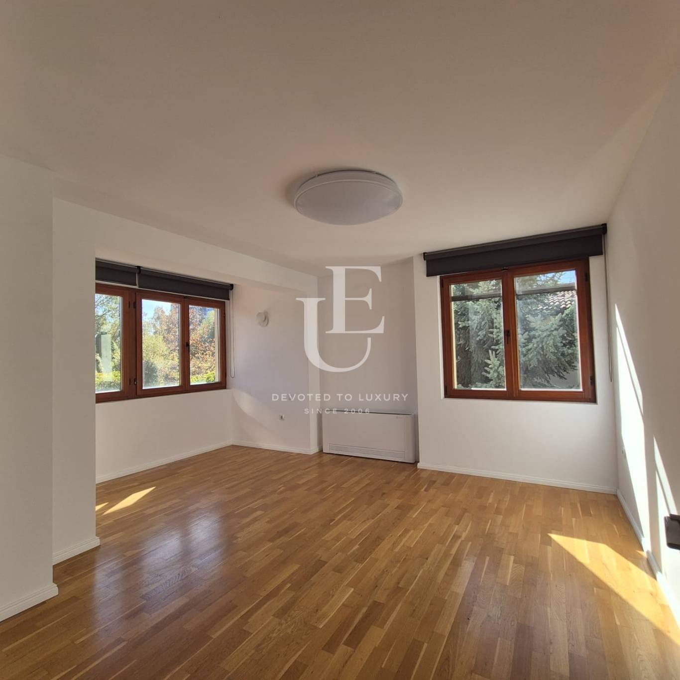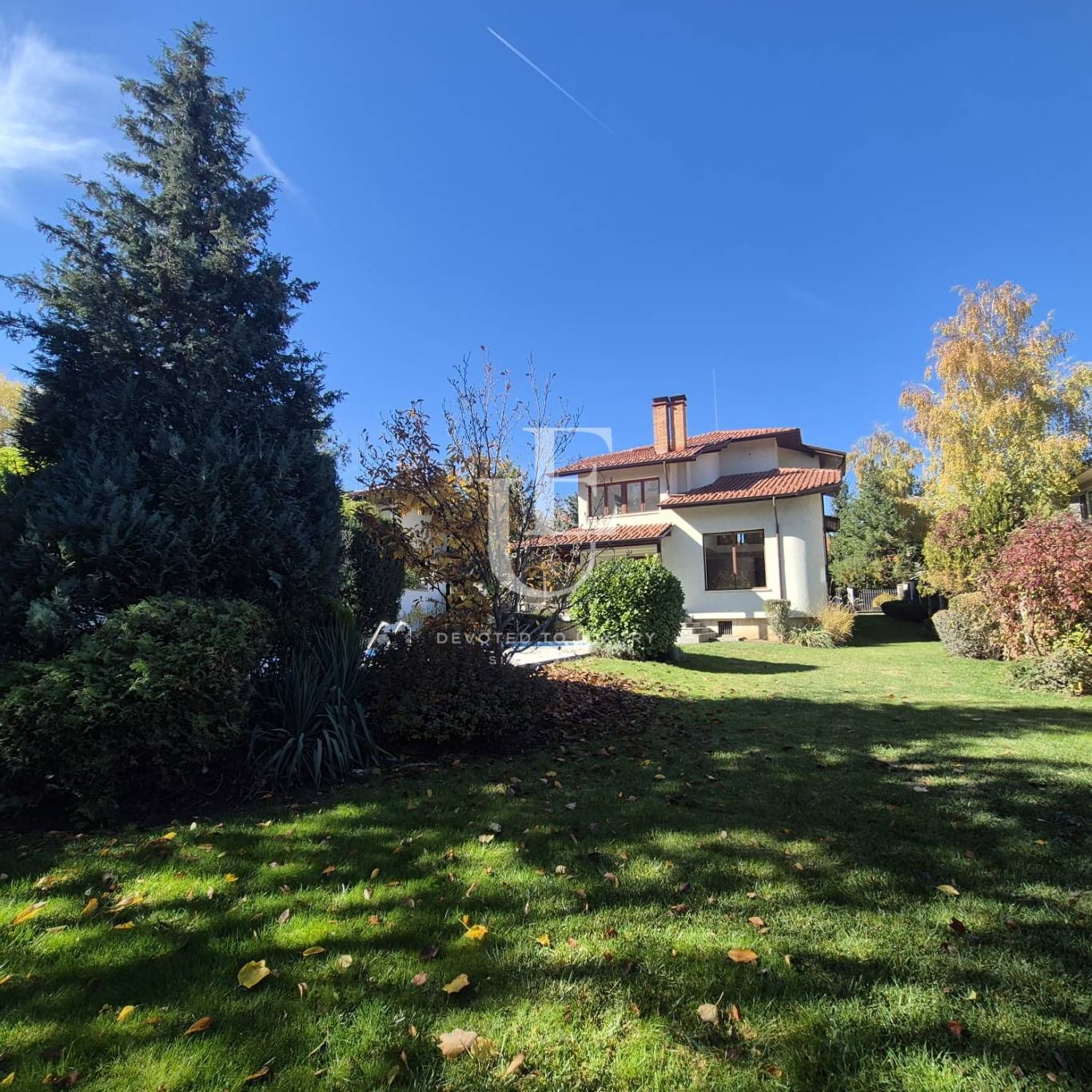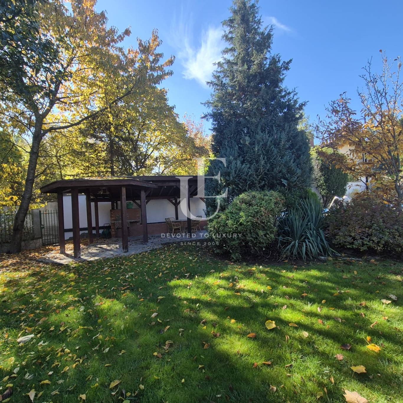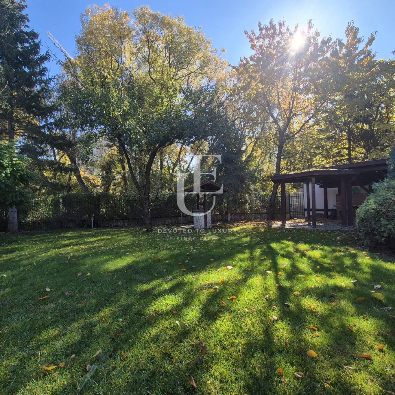 Юник Естейтс представя на вашето внимание уютна къща с разкошно озеленен двор с басейн и лятна кухня с барбекю зона, разположена в много спокоен и добре облагороден район, в близост до Американския колеж, Икеа, Ринг Мол и Околовръстния път.