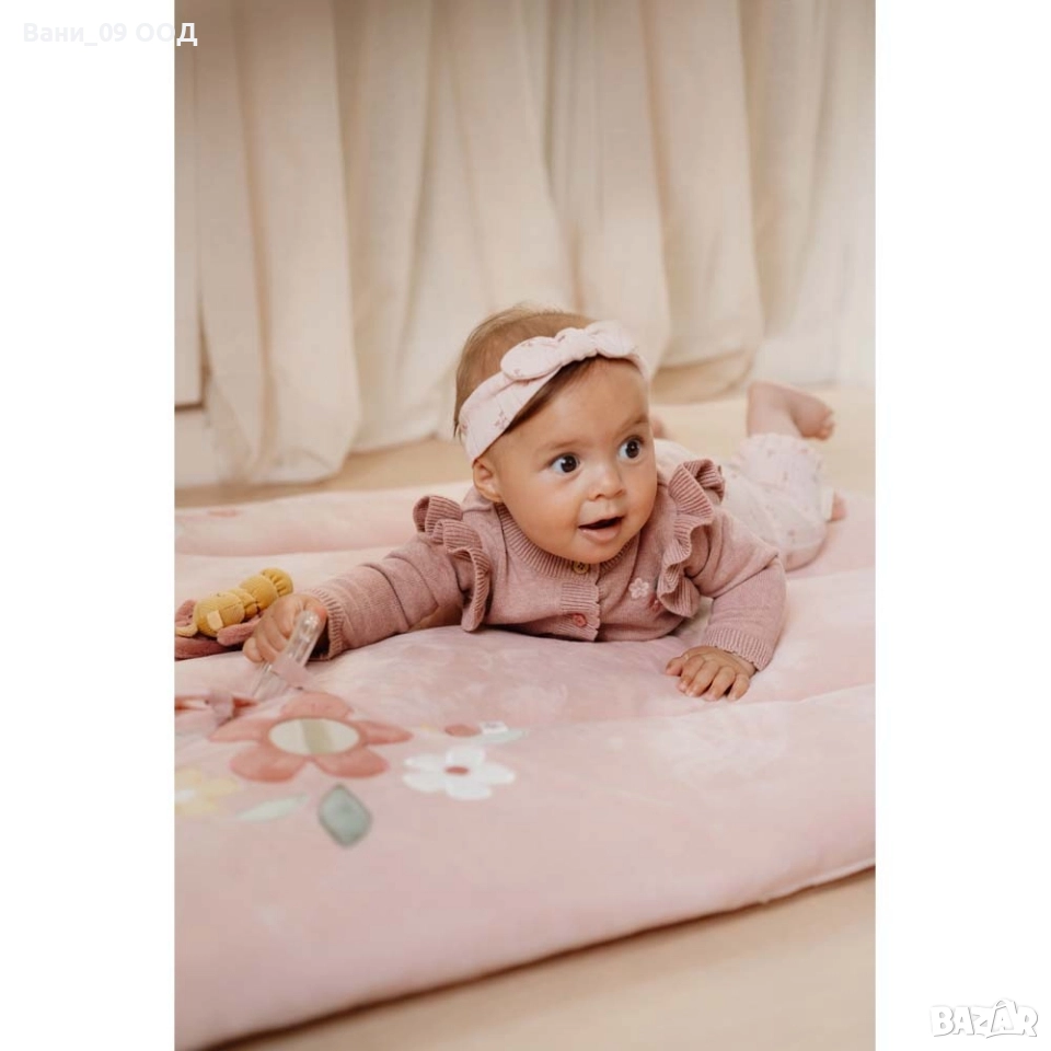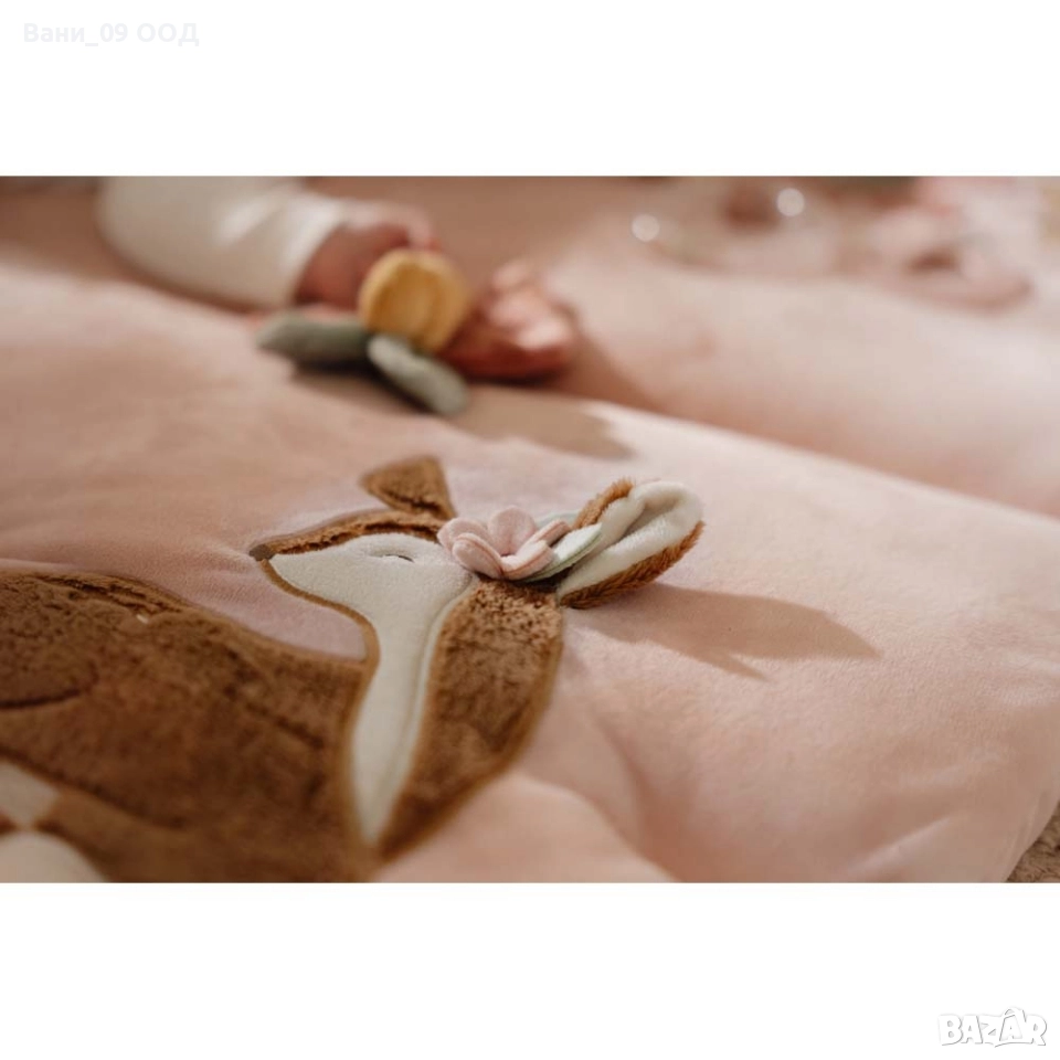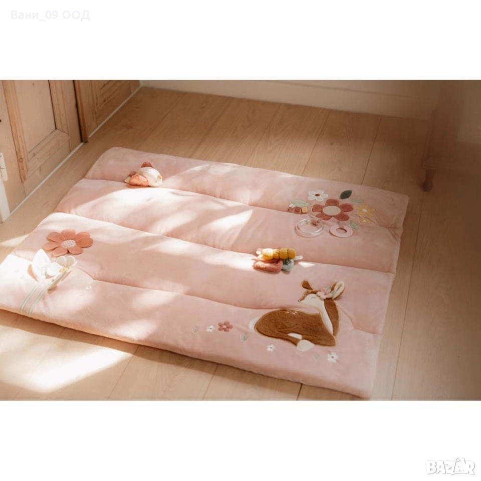 Потопете се в магията на приказната градина с този сладък розов килим за игра. Има толкова много за откриване и разглеждане! Детето ще опознае листата, ще се срещне със сладкия мек елен и ще играе с пеперудата и птичето. Килимчето е оборудвано и с гризалка и прозрачен пръстен с три мъниста, които издават звук, когато се движат. Стимулира сетивата и развитието на детето.