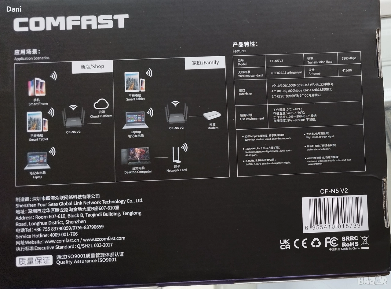 router comfast 1200mbps CF-N5 V2 → Обява 52836511