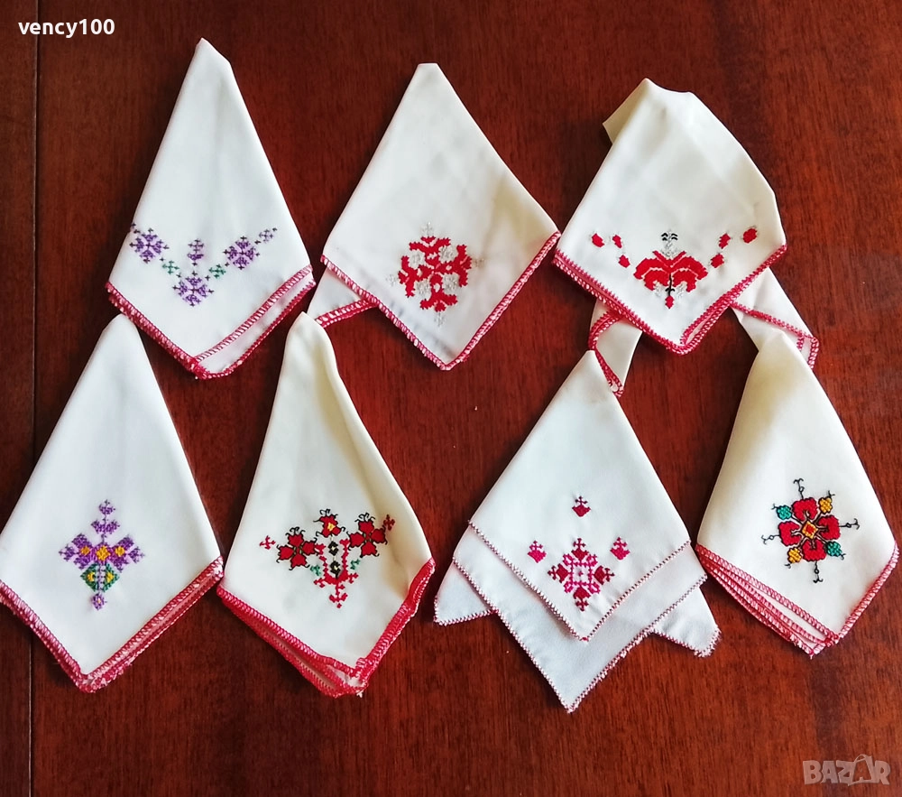 Сн. 5 - копринени кърпички с бродерия - 7 бр. - 30 лв. общо.