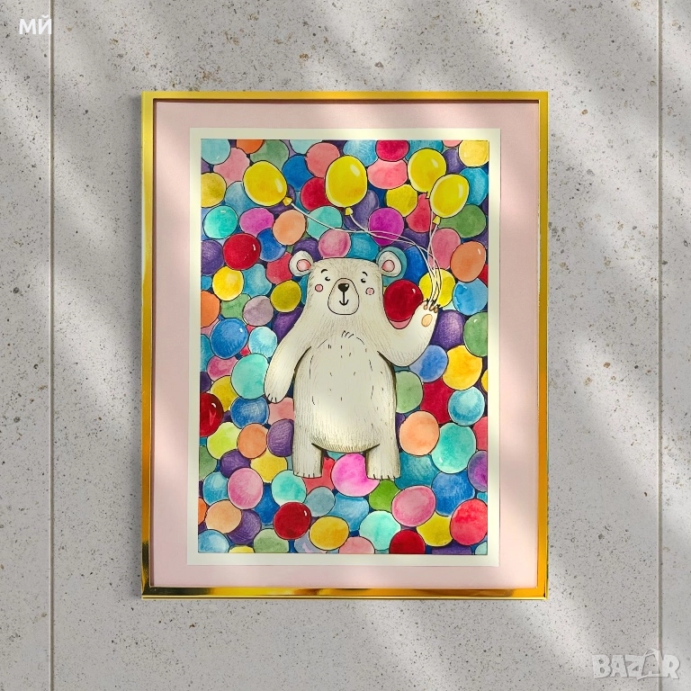 Красиво оформена детска илюстрация/рисунка. Подходяща за украса на детска стая или подарък. Всички илюстрации са налични и са рамкирани като на снимките. За въпроси, моля пишете лично съобщение.