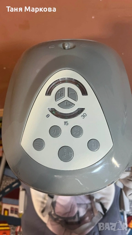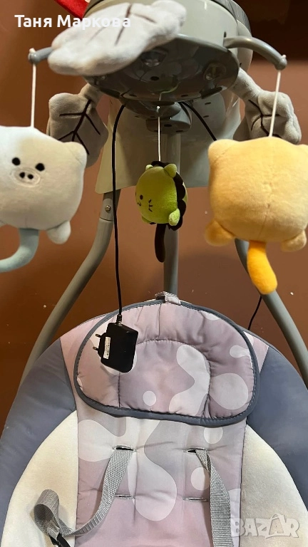 Функция: безшумен режим на люлеене, която прави люлеенето по- приятно и помага на бебето да заспи по -лесно. • Вградена смарт технология, за автоматичното регулиране на скоростта на люлеене, спрямо теглото на бебето. • Повече възможности за забавление и сетивно развитие на бебето: - Въртящи се играчки с допълнително движение нагоре- надолу. - Опция за прожектиране на светлини. - Комбинирана опция - въртящи се играчки и светлини. Комфортна за бебето: • Специален дизайн на седалката тип „гнездо“, за максимален комфорт на бебето. • Две позиции на люлеене на седалката – напред и настрани. Допълнителна възможност за регулиране на седлаката в легнало и изправено положение. Функции: • 5 скорости на люлеене. • Люлеене с автоматично изключващ се таймер (8-15-30 мин). • 12 мелодии, от които 2 са успокояващи природни звуци. • Възможност за регулиране на нивото на звука. Екстри: • Масичка за игра и/ или хранене, която може да се сваля. • Захранва се с батерии или с електричество, по избор. • Дамаската може да се отстрани и пере на 30°C; • Компактна при сгъване. Безопастност: 5 точков колан ; Отговаряща на всички изисквания според Европейските стандарти за безопастност