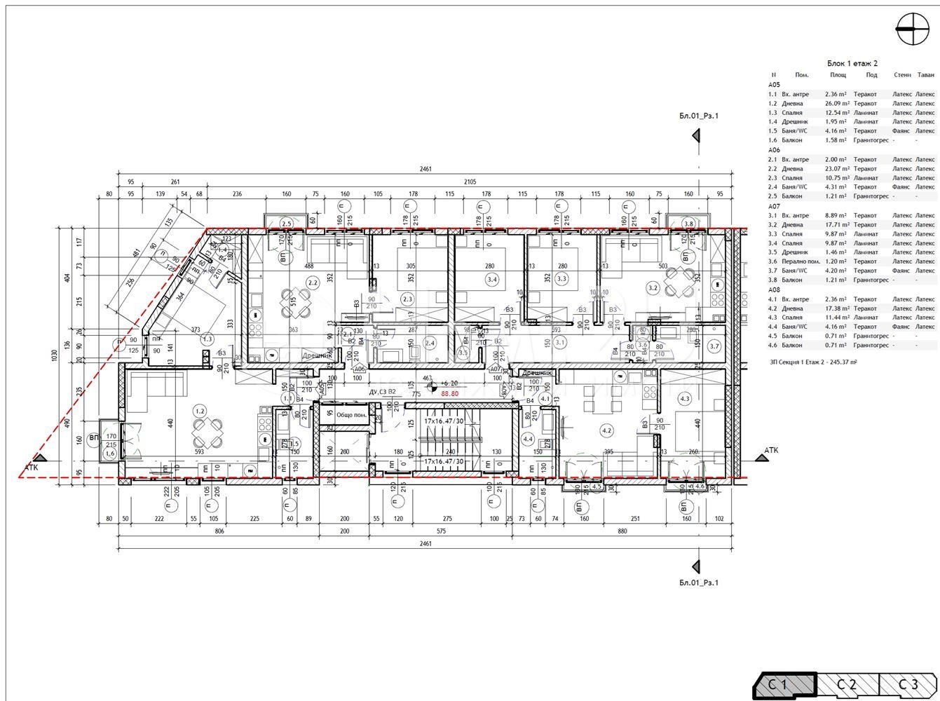 Имотът е разположен върху площ от 55 квадратни метра и е със следното разпределение: