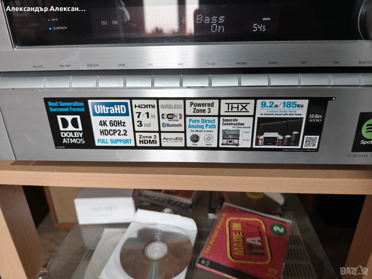 Dolby Atmos®, революционният формат за съраунд звук, добавящ ново измерение към филмовите саундтраци. Първоначално разработен за използване в мултиплексни кина, Dolby Atmos използва обектно-ориентирано миксиране и канали за таван, за да движи насочените ефекти около и над вас в безшевна сфера от жив звук. Балансирани предни XLR и 11.4-канални предусилватели и 8-входови/3-изходни 4K/60 Hz HDMI® 2.0 терминали, поддържащи HDCP 2.2-защитено от копиране 4K интернет видео, осигуряват максимална свързаност за вашето домашно кино, готово за бъдещето. TX-NR1030 е проектиран и за спиращо дъха стерео изпълнение с Wi-Fi® и Bluetooth, отваряйки ви пред света на безжичната цифрова музика, от стрийминг на музика с висока резолюция до Spotify, докато Pure Direct Analog Path поставя наситения аналогов звук на едно ниво със специални Hi-Fi усилватели. В допълнение към всичко това, има DTS Neo:X™ upmixing, 4K video upscaling, ISF video калибриране и управление от смартфон във всяка зона. Това е просто най-добре оборудваното и най-добре звучащо 9.2-канално решение, достъпно за забавление от следващо поколение.