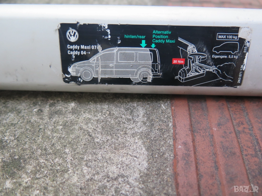 VW Caddy 2004-2020 Roof Bars ( With T-Groove Roof System ) 2K0071126 Maximum load: 94kg .Оригинални алуминиеви греди.Наличен 1бр. секретен ключ за капачките,налични са 4болта за закрепване към колата. Внос.