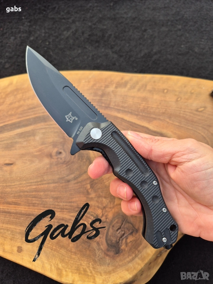 • дръжка от фрезовани черни люспи G10 със стоманени облицовки
