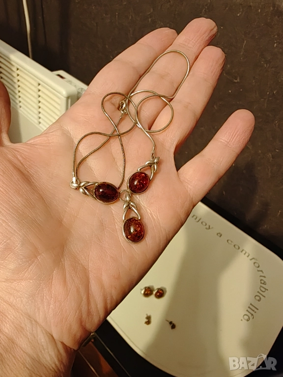 Ретро френско колие сребро с естествен кехлибар → Обява 52837841