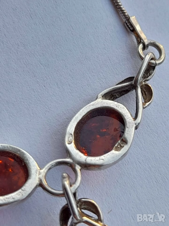 Френско старо колие сребро 925 дълбок печат с естествен кехлибар .Дължина 44 см .Крайна цена .