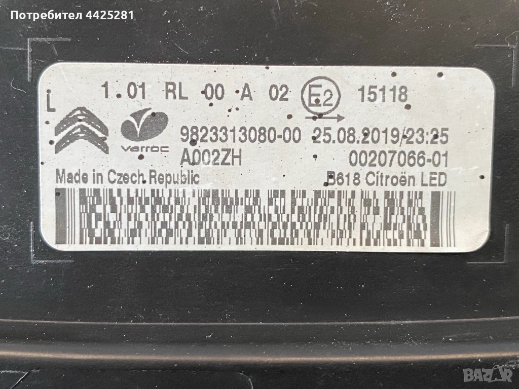 фар ляв Citroen C3 led дневни и мигач 2016-2024 г. #1044V. 9823313080 → Обява 52837879