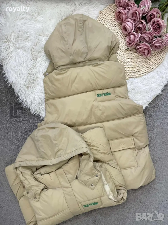 Кройка: Кройката е права със свободен силует, закопчаване цип, качулка