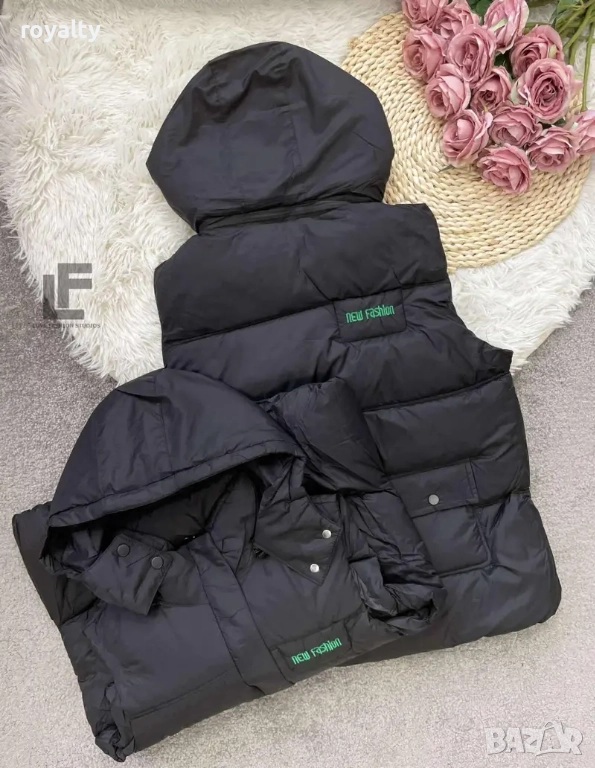Кройка: Кройката е права със свободен силует, закопчаване цип, качулка