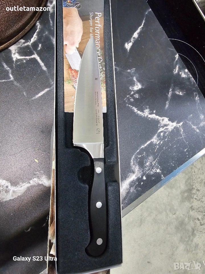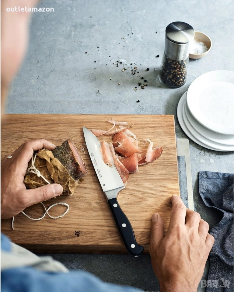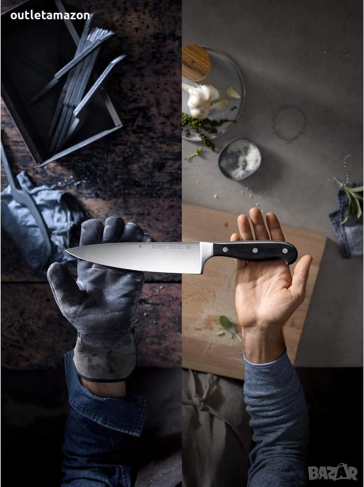 Висококачествено рязане: острието е термично обработено в специална пещ. Процесът на закаляване и лазерно контролираното роботизирано шлифоване осигуряват оптимален ъгъл на заточване. Ножът остава остър по-дълго.