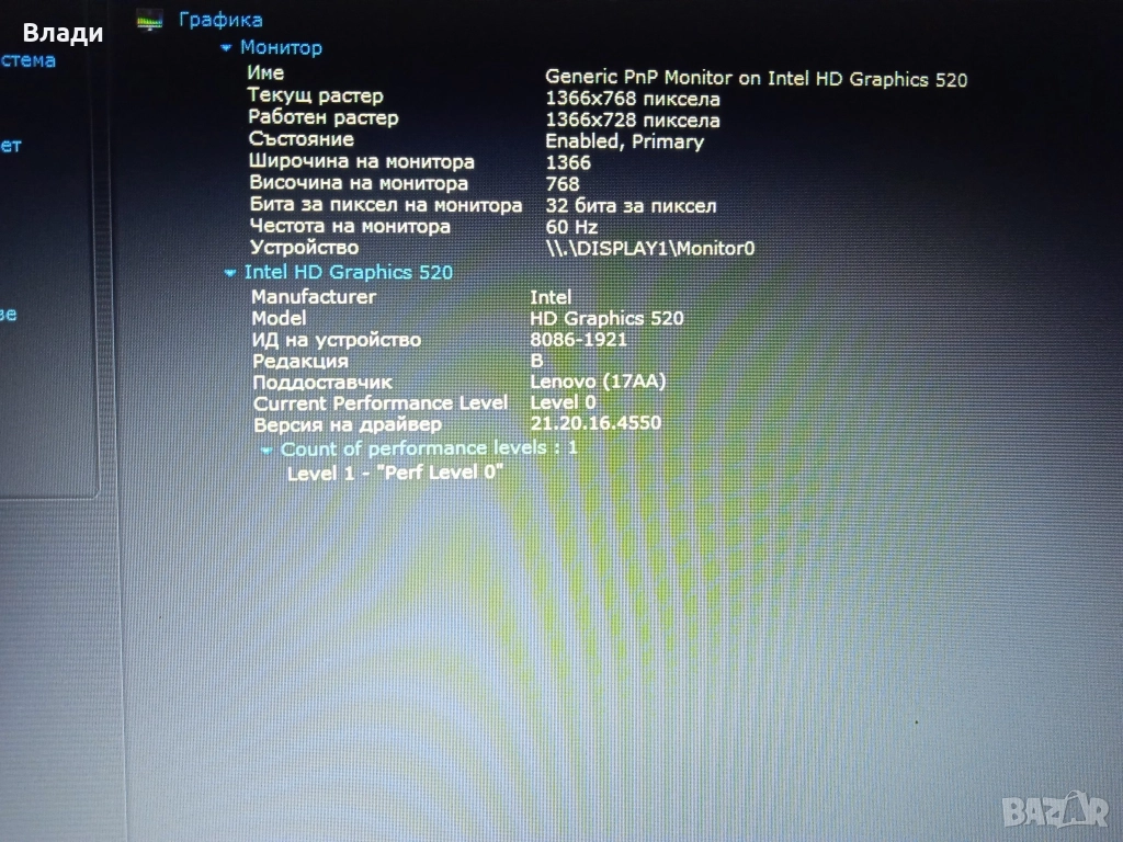 Видеокарта Intel HD Graphics 520 - 1GB