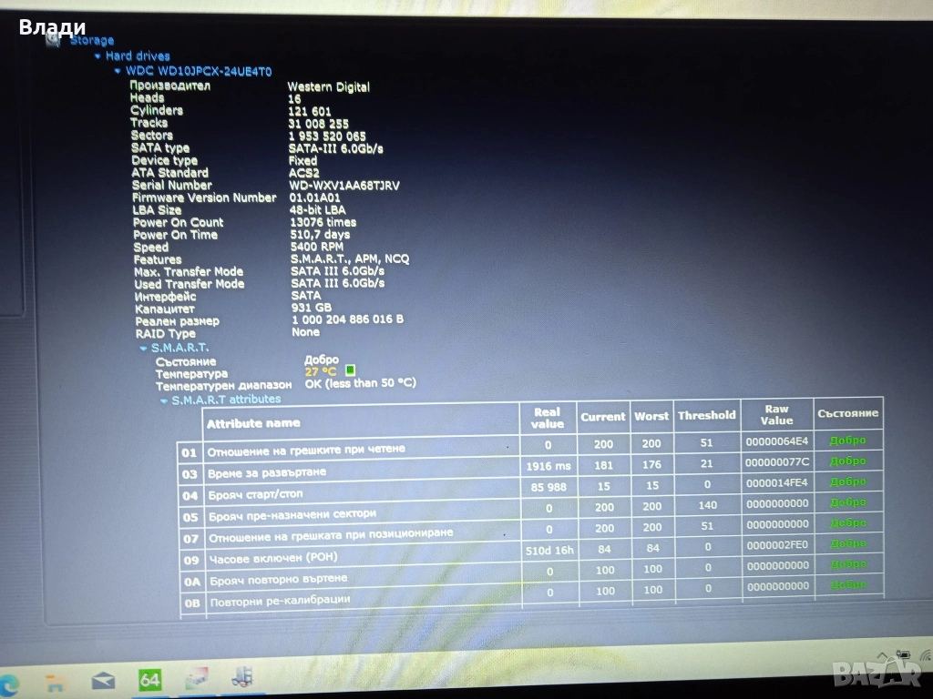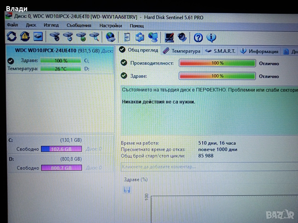 Хард 1TB на 100% здраве и производителност.