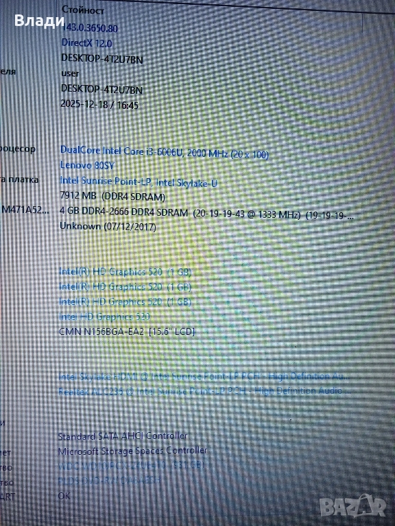 Lenovo Ideapad V310-15ISK Intel i3 6th gen/8GB/1TB/отлична батерия → Обява 52838665