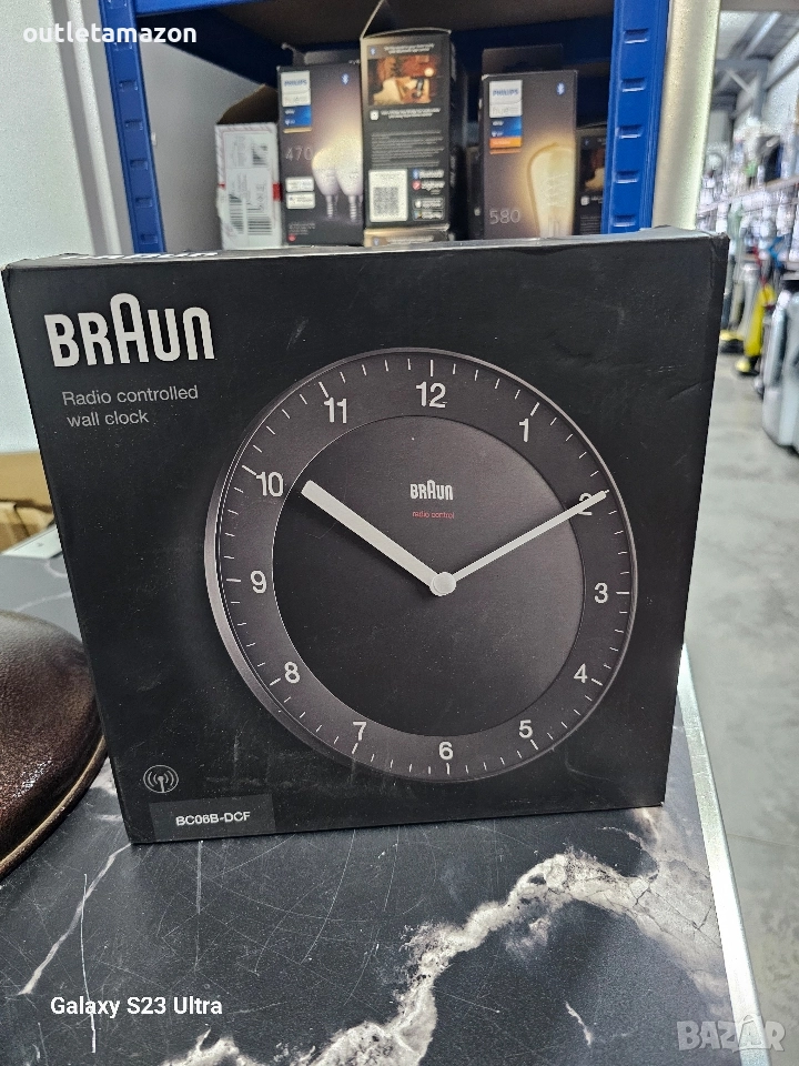 Тип: Кварцов часовник Луксозен стенен часовник Braun с радио контрол, който автоматично сверява часовника в Централна и Източна Европа, включва повечето държави в Европа. За страни, в които няма връзка с радио контрола - часа може да се сверява ръчно и да се изключи функцията за автоматично сверяване. Размерите на часовника са 200 x 200 x 32 мм.