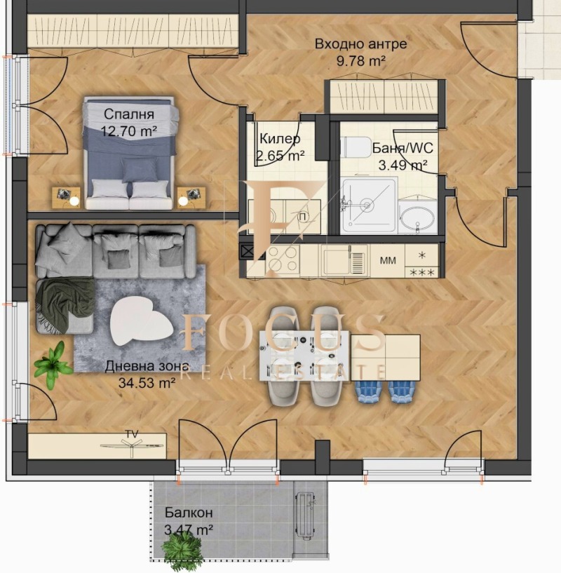 Организация Фокус има удоволствието да ви представи двустаен апартамент в жилищен комплекс в кв. Остромила, гр. Пловдив!