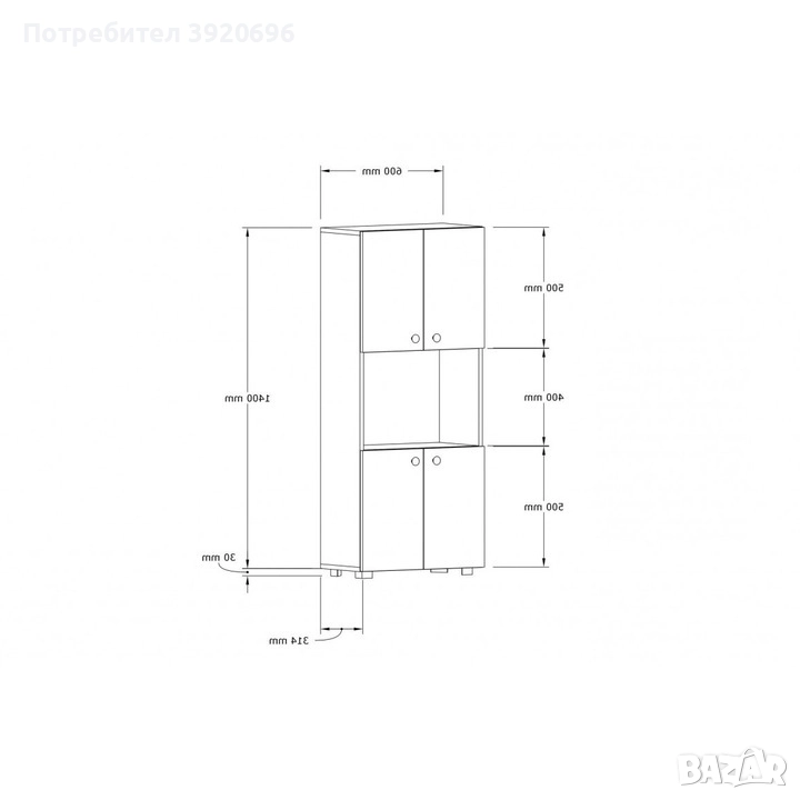 • Ширина: 60 см. Височина: 140 см. Дълбочина: 31.4 см
