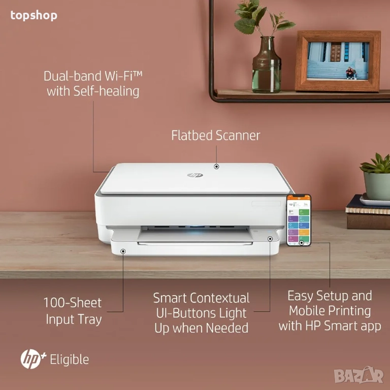 СПЕСТЕТЕ ДО 70% ОТ INSTANT INK: 3 месеца БЕЗПЛАТНО* Instant Ink, когато активирате HP+ по време на настройката на вашия принтер. Печатайте документи или снимки и спестете до 70% с Instant Ink, безпроблемната и пестеща пари услуга за подмяна на мастило, която автоматично доставя мастило само когато ви свършва. Анулирайте или променете плана си по всяко време!