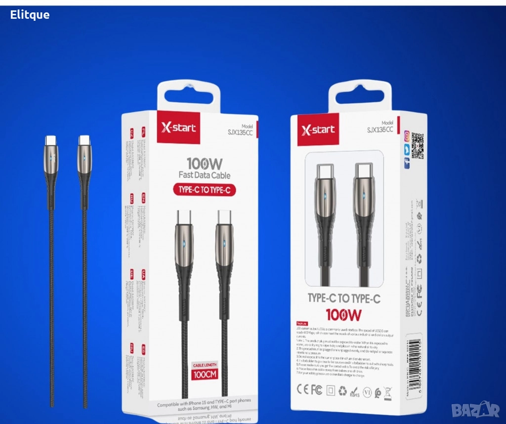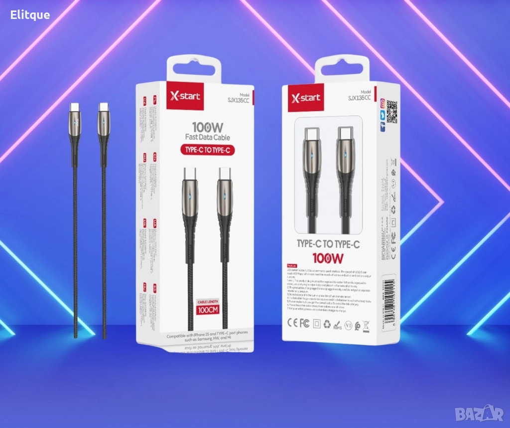 Тип продукт : Кабел за бързо зареждане; Кабелът SJX135CC Type-C to Type-C е предназначен за бързо зареждане с мощност до 100W, което осигурява ефективно и бързо зареждане на устройства, съвместими с технологията за бързо зареждане. Дължината му е 100 см, което предлага удобство и гъвкавост при използване. Кабелът поддържа висока скорост на предаване на данни, което го прави подходящ както за зареждане, така и за синхронизиране на данни между устройства; 12 месеца гаранция.