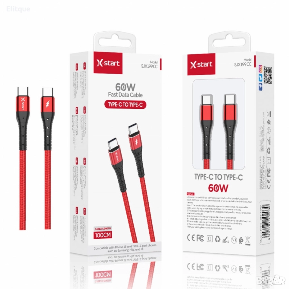 Тип продукт : Кабел за бързо зареждане; USB-C Кабел за Бързо Зареждане SJX199CC (60W, 1 метър); Този USB-C кабел SJX199CC е създаден за бързо зареждане и трансфер на данни. Поддържа мощност до 60W, което го прави идеален за зареждане на съвместими устройства, като лаптопи, смартфони и таблети. Дължината на кабела е 1 метър, което осигурява удобство при използване в различни ситуации; Характеристики: Тип на конектора: USB-C към USB-C; Мощност: До 60W (20V/3A); Скорост на трансфер на данни: До 480 Mbps; Дължина: 1 метър; Съвместимост: Поддържа бързо зареждане и съвместимост с устройства, които използват USB Power Delivery (PD); Материал: Висококачествена изработка за дълготрайна употреба; 12 месеца гаранция.
