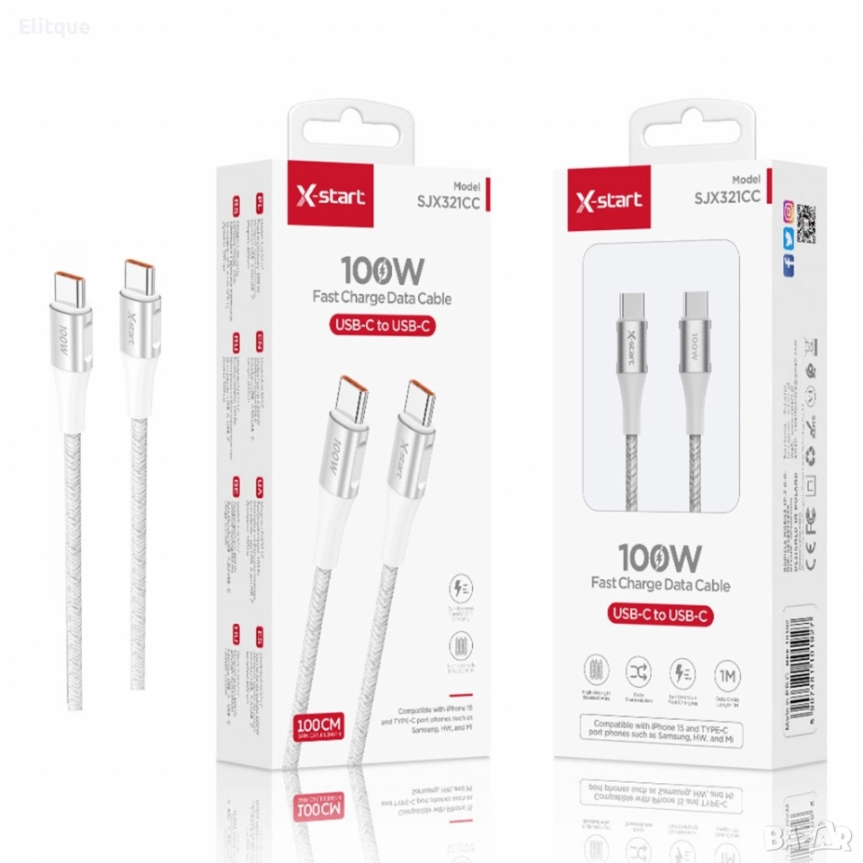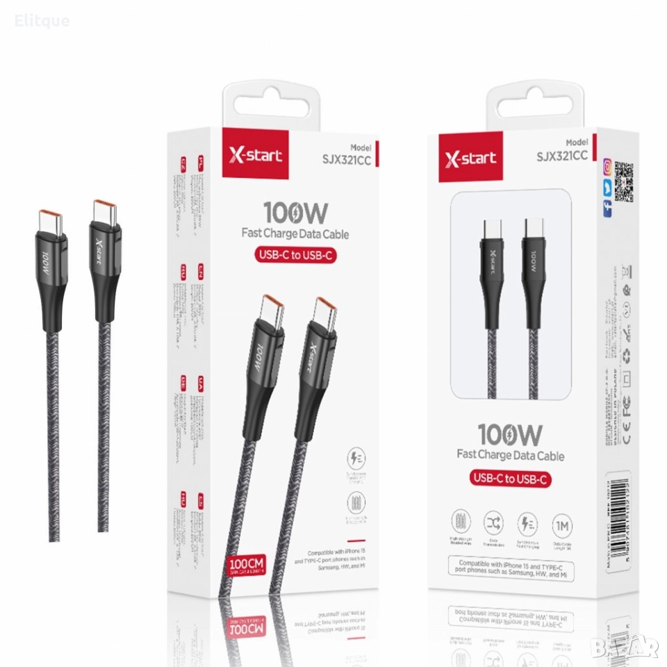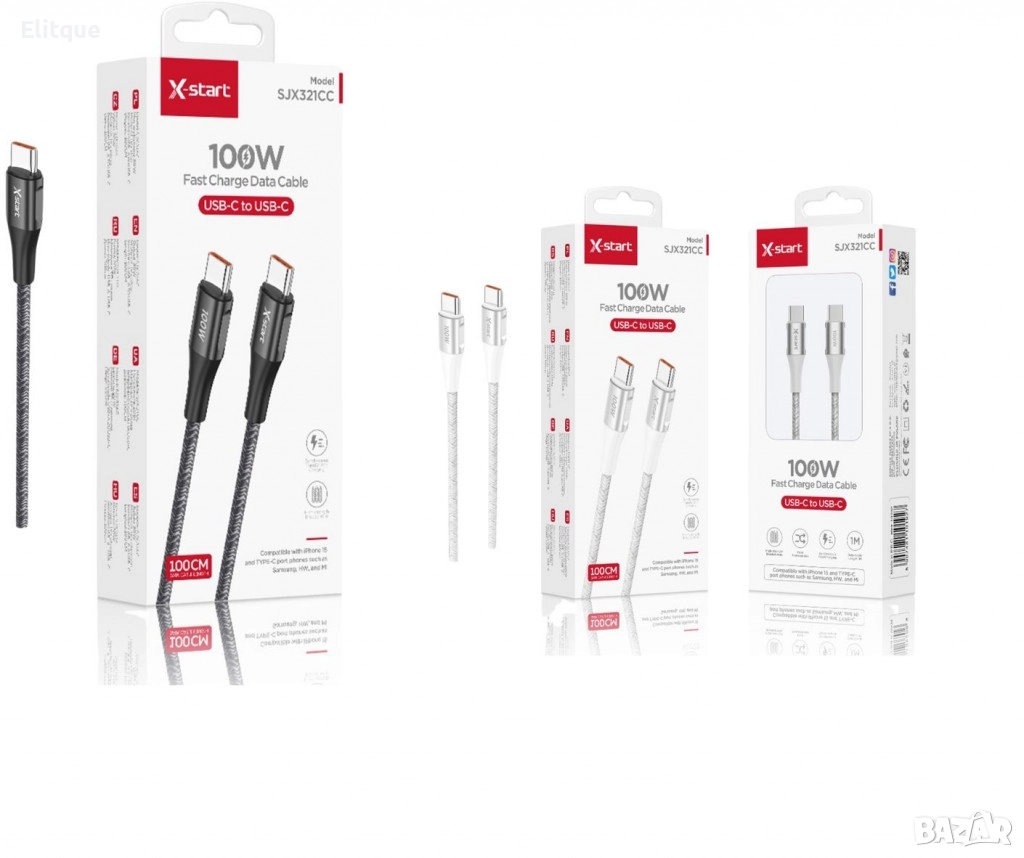 Тип продукт : Кабел за бързо зареждане; USB-C кабел за бързо зареждане, 100W, с дължина от 1 метър, наличен в два цвята – черен и бял. Поддържа бързо зареждане и високоскоростно пренос на данни, идеален за устройства като лаптопи, смартфони и таблети. Кабелът е здрав, с подсилена конструкция, осигуряваща дълготрайна употреба. Съвместим с Power Delivery (PD) стандарта, позволява зареждане на устройства с мощност до 100; 12месеца гаранция.