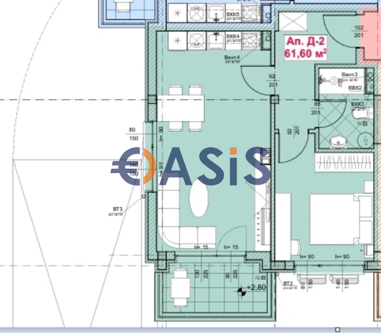 За продажба се предлага 2-стаен апартамент на 2-ри етаж в нова сграда, близо до плажа Харманите,Созопол .