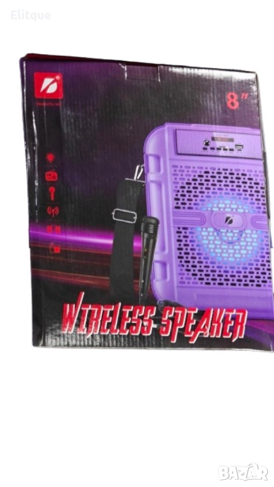 Безжична 8-инчова колонка,с микрофон,презрамка,поддържа USB/TF,добър звук